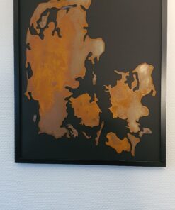 Danmarkskort i jern som er kobberbehandlet så det har kobber/rustlook.