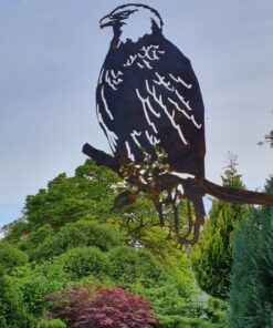 Ørnen er skåret i 3mm Cortenstål og kan slås ind i et stykke træ eller træstamme