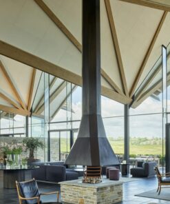 Udsugning over det åbne ildsted i restauranten hos Great Northern er lavet i bruneret/patineret tombak.